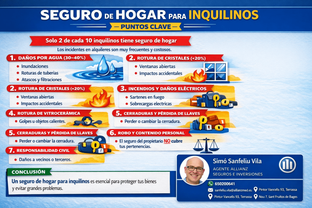 En este artículo te explicamos cuáles son los siniestros más frecuentes en viviendas de alquiler, por qué es tan importante que el inquilino tenga su propio seguro y qué coberturas son imprescindibles para evitar conflictos y proteger tus finanzas.